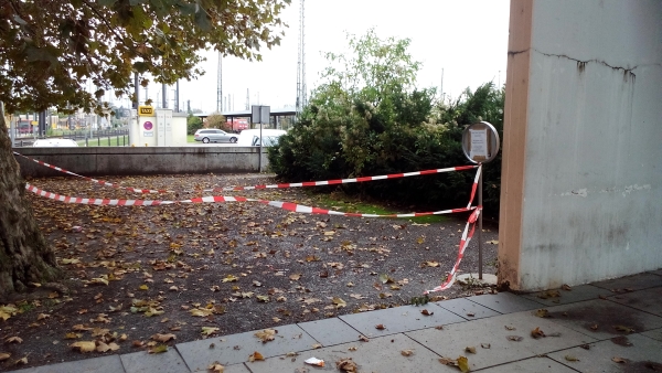Jetzt hat die Bahnhofsverwaltung reagiert: Bei den Toiletten im Bahnhof hat sich noch nichts geändert, aber die Pinkelecke vor dem Hauptbahnhof wurde mit einem Absperrband recht und schlecht umzäunt.